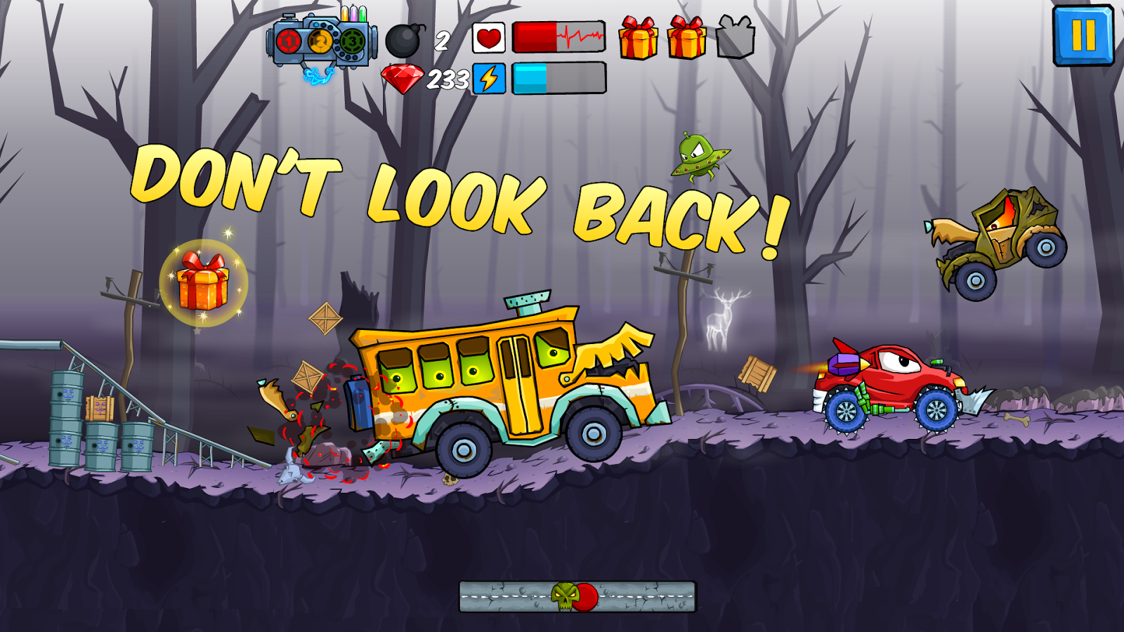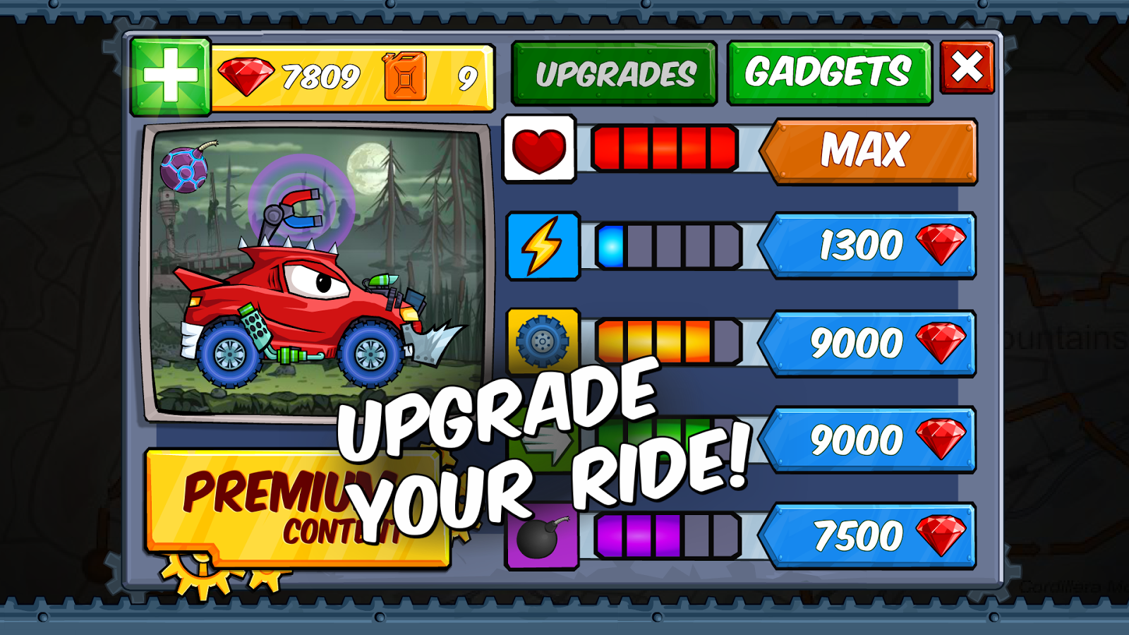 • Чтобы увеличить скорость, собирай нитро и другие улучшения!
