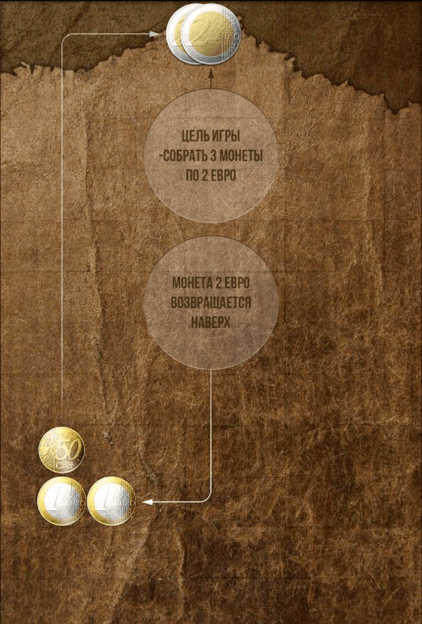 Цель игры: собрать три монеты 2 евро из мелочи.