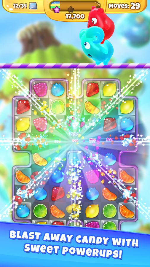 Yummy Gummy – игра головоломка из жанра 3 в ряд, где вам предстоит накормить конфетами своих желейных друзей. В этой игре вы попадете на сказочный остров, где живут желейные зверушки, которые очень любят мармелад. Складывайте по три и более одинаковых конфет в ряд и кормите ими своих героев, как только ваш герой наполнит себе животик конфетками, он будет падать и на его место придет другой. Это бесконечная игра с многочисленными героями и фруктовыми достижениями. Составляйте фрукты в ряд и наносите комбо удары для быстрого заполнения животика. Играйте со своими друзьями и получайте дополнительные жизни заходя в игру через Facebook.
