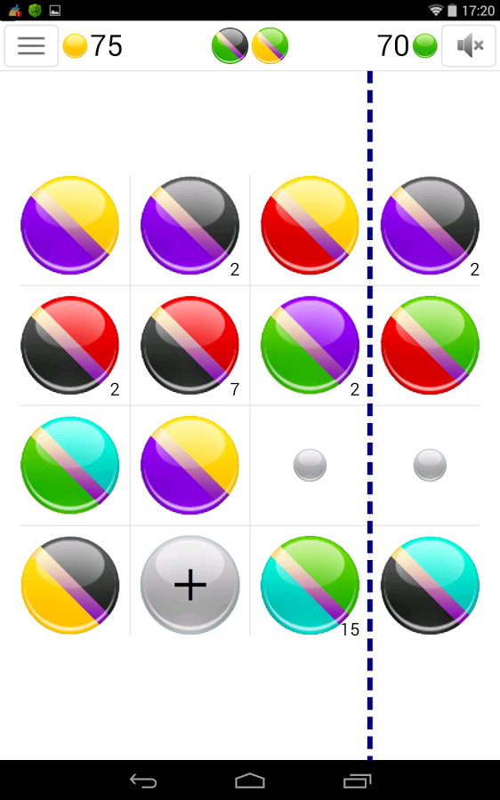 Если противоположные половинки имеют один цвет, два шара сливаются в один.