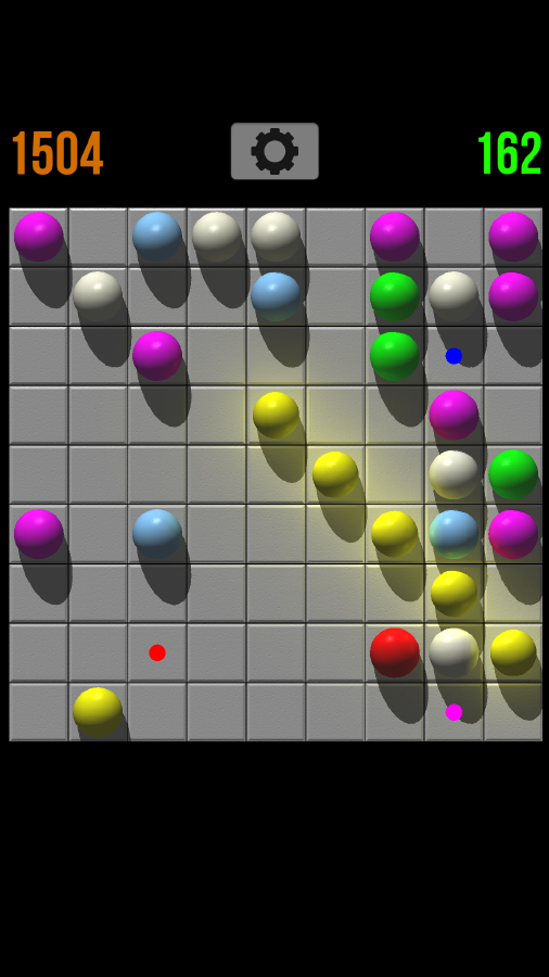 Правила игры: каждый ход на поле появляются новые шары и вы можете перемещать их на свободные места. Когда вы выстраиваете пять или более шаров в ряд (по диагонали в том числе), они исчезают и вы получаете очки. Когда вся доска заполнена, игра заканчивается.