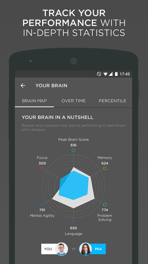 Учитывая то, что на вершине плеяды подобных приложений давно разместился Lumosity, данное решение нельзя с ним не сравнить. Дело в том, что программа схожа с удачным продуктом практически во всем. Начиная от стартового теста и заканчивая аналогичными упражнениями. Здесь немного иной дизайн, который, тем не менее, выполнен минималистично. Он также имеет дополнение в виде тренировки языковых навыков.