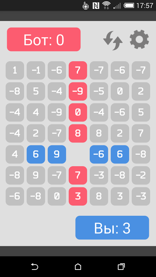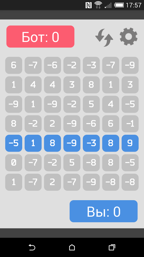 Изысканная математическая головоломка с простыми правилами, но увлекательным геймплеем. Ваша задача — набрать больше очков, чем у соперника. Для этого вам понадобиться выбрать тактику — вы можете просто выбирать максимум, а можете навязывать противнику плохие ходы.