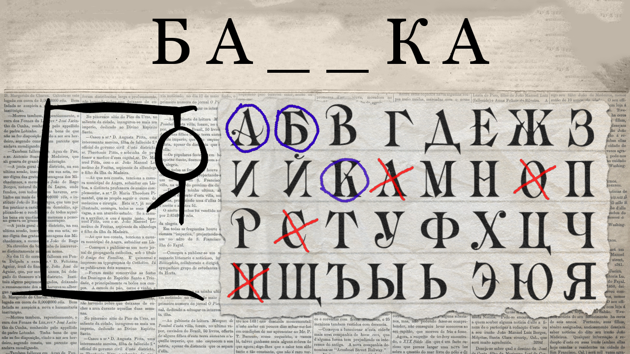 Если забыли - цель игры угадать по буквам загаданное слово; не отгадаете - сами знаете что будет ☺