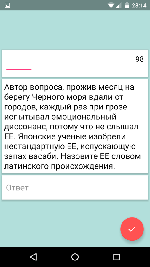 Викторина по одноименной телепередаче "Что? Где? Когда?", в которой в течение некоторого времени вы пытаетесь найти ответ к каверзному вопросу.