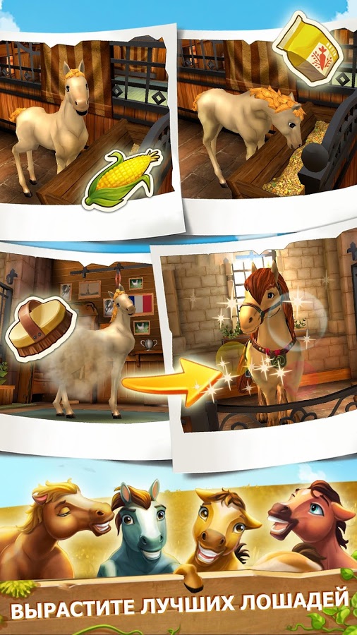 - ВЫРАСТИТЕ ЛУЧШИХ ЛОШАДЕЙ: ласкайте, кормите и чистите своих четвероногих друзей, чтобы из жеребят они превратились во взрослых коней и кобылок!