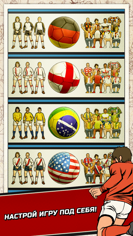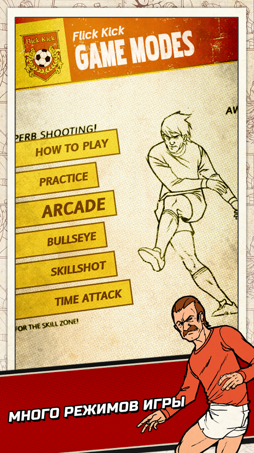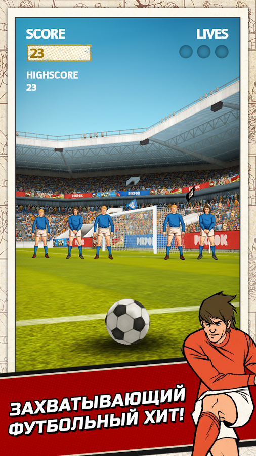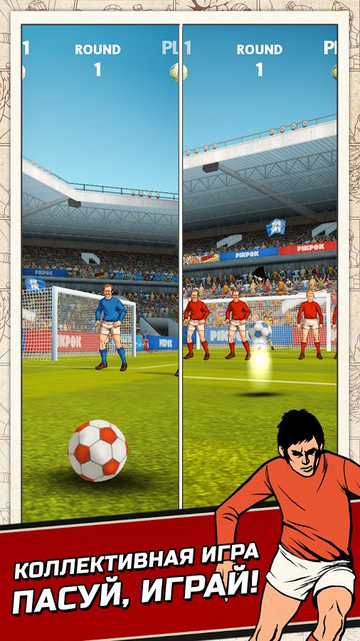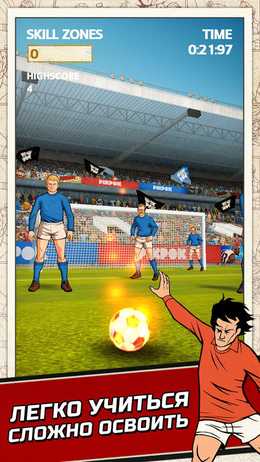 Благодаря интуитивно понятному управлению в Flick Kick® Football легко играть, но непросто выиграть! Проводи крученые удары, навешивай, пасуй по всему полю и бей по воротам одним движением пальца! Проверяй свои навыки в разных режимах игры, включая "Снайпер" и "Нападение на время"! Меняй вид своей команды, мяча и болельщиков, подбирая любимые цвета!
