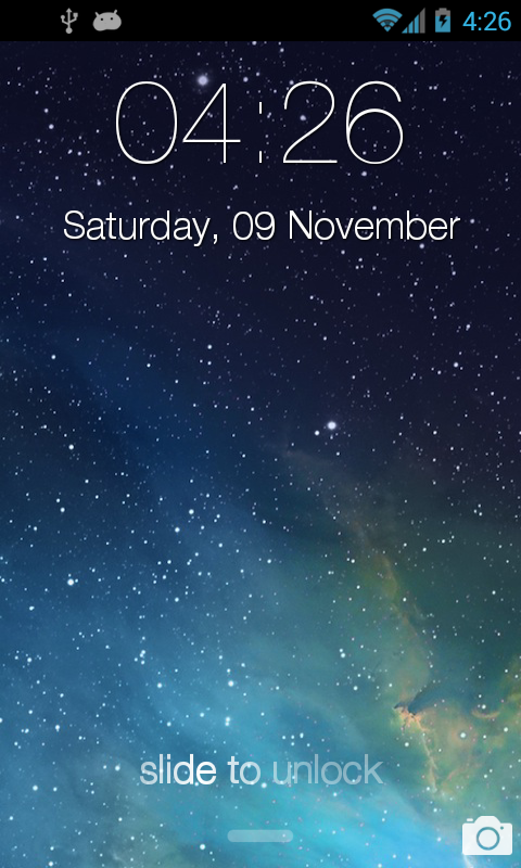 Копия скринлокера с iPhone 5S. Наслаждайтесь локсрином iPhone 5S на своём Андроид устройстве совершенно бесплатно. Отличная графика и гладкая анимация.