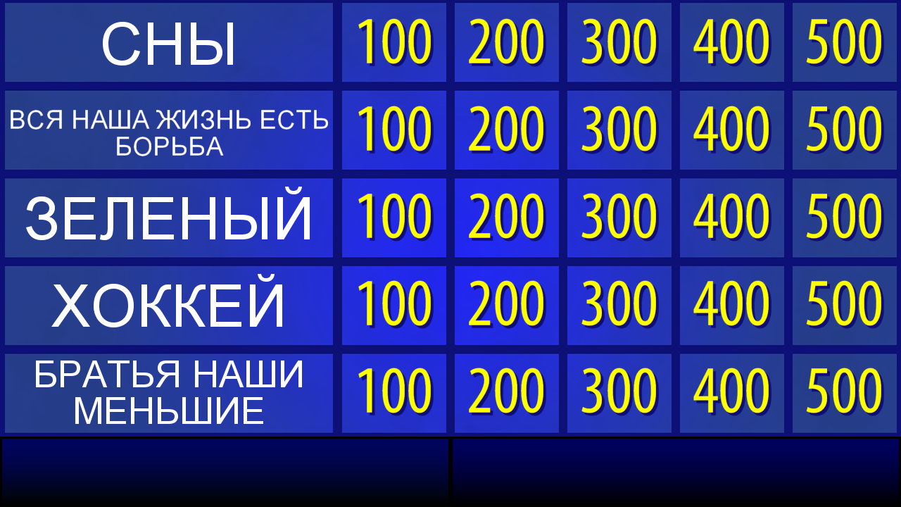 Суть викторины, для тех кто не знает, заключается в том, что три участника отвечают на вопросы различной стоимости, пытаясь опередить друг друга. Игра состоит из четырёх раундов — трёх основных и финального. Игрок набравший больше всего очков побеждает.