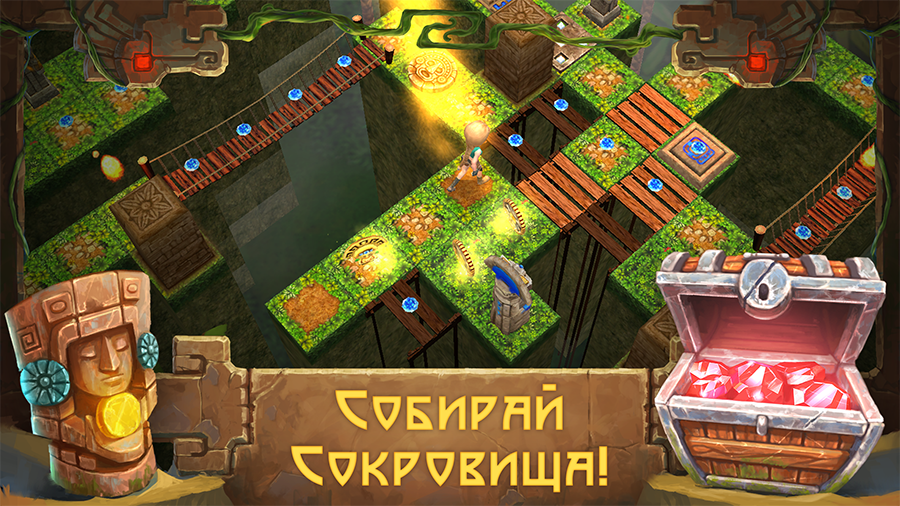 Будьте готовы к долгому, незабываемому путешествию в неизведанных местах: в джунглях, наполненных мистическими секретами, среди древних руин, гробниц, с большим количеством опасных ловушек на пути, и подземелий. Умные лабиринты в финале приведут вас к магическому храму Майя с таинственными сокровищами.