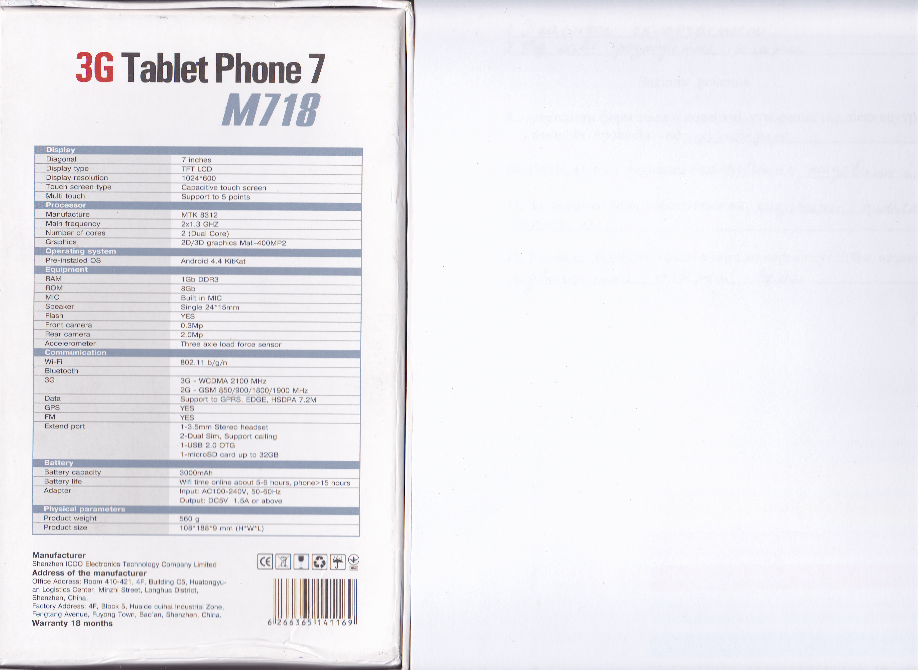 китайского планшет-телефона 3G Tablet Phone 7 M718.