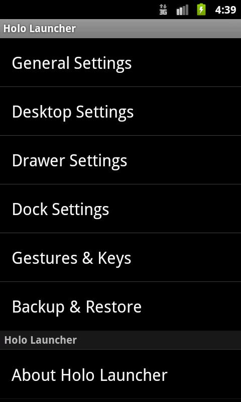Простой, быстрый лаунчер с морем настроек. В отличие от Apex лаунчера или Nova, Holo может работать на устройствах с Android Froyo, Gingerbread, ICS и Jelly Bean.