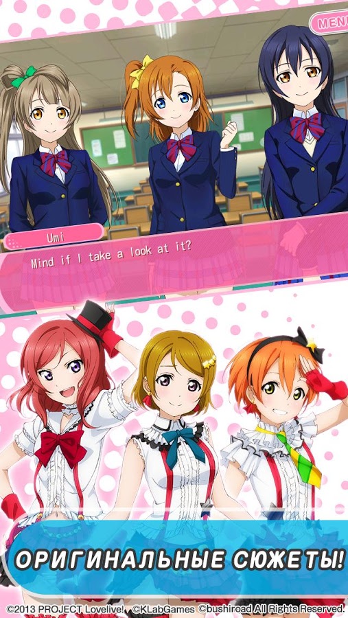 Управляй школьной группой кумиров «μ's» (Muse) из серии «Love Live!» и помоги им выступить с отличным перформансом!