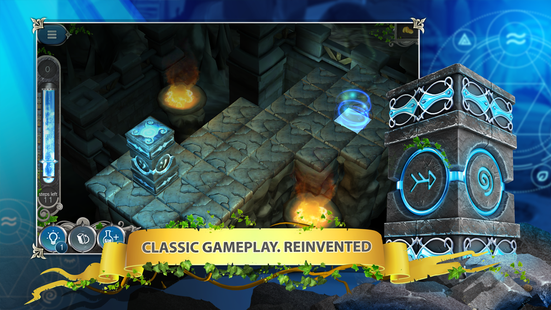 Открой силу священных рун, решая таинственные головоломки. Логическая игра с красивым уровнями, отличными декорациями и интересными загадками. Вы должны собрать потерянные руны и добраться до волшебного портала. Используя всевозможные приспособления, вам необходимо собрать потерянные руны. Для этого можно использовать специальные мосты, коммутаторы и различные плитки. Сбор плиток увеличивает количество вашей манны. В игре три различных мира и каждый содержит по 13 уровней. Игра обязательно придётся по вкусу любителям логических игр.