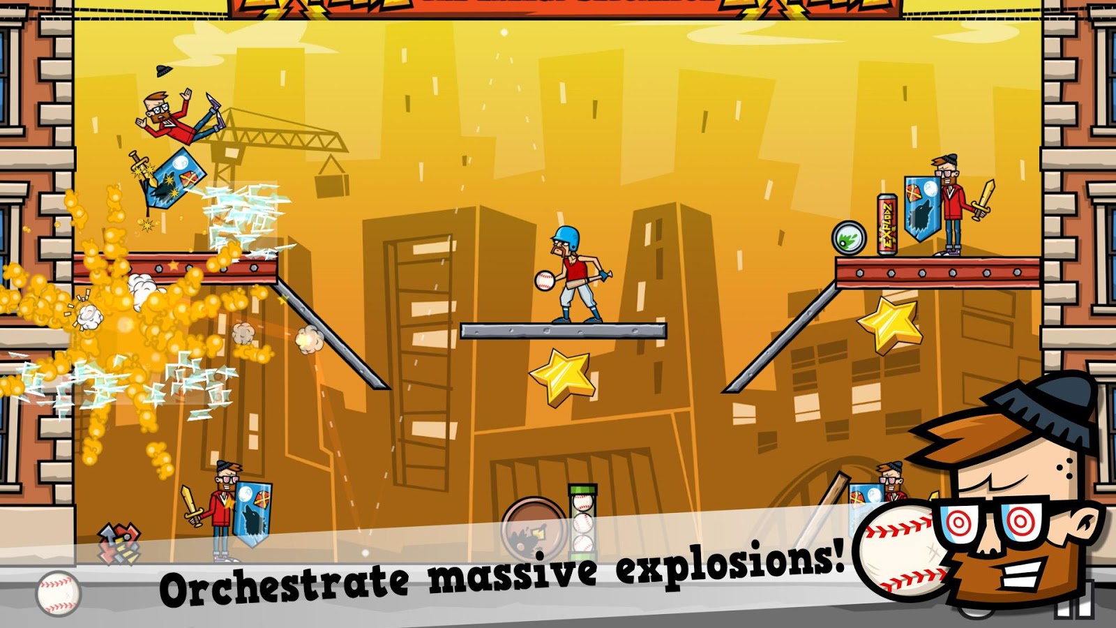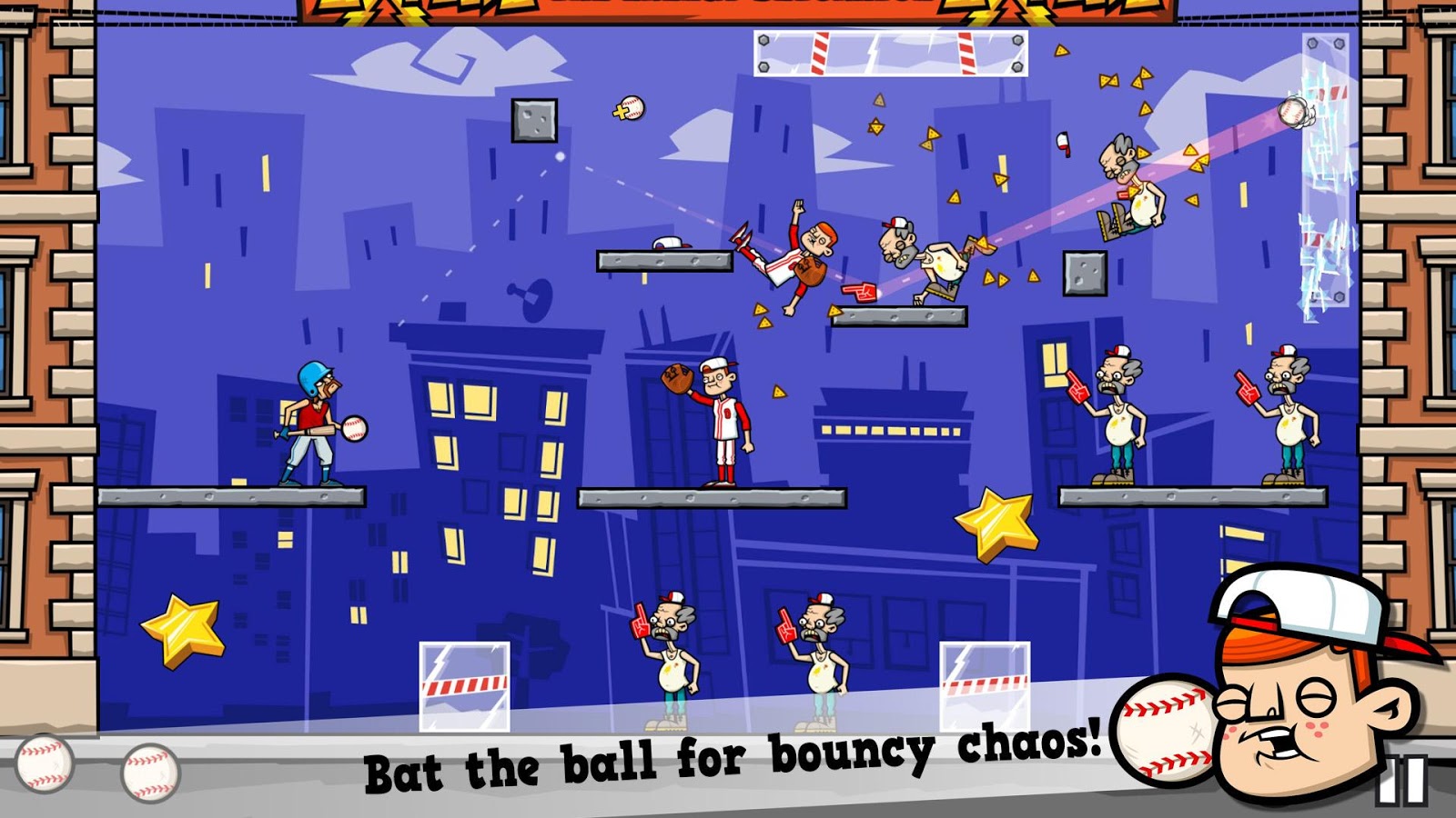 В игре вы управляете игроком по имени Гейб Карпаччио. Он закончил свою карьеру в бейсболе, но прежние обиды, причиненные ему некой компанией Explodz Inc. не дают ему спокойно наслаждаться жизнью заслуженного спортсмена на отдыхе. Он берет в руки бейсбольную биту… и мяч и отправляется восстанавливать справедливость! Его (и ваша, заодно, задача), сбивать мячом сотрудников вышеупомянутой компании, надоедливых фанов, предвзятых судей, да и косоглазых игроков, заодно! Ну и как же без звездочек?! По ним тоже желательно попадать для улучшения общего счета!