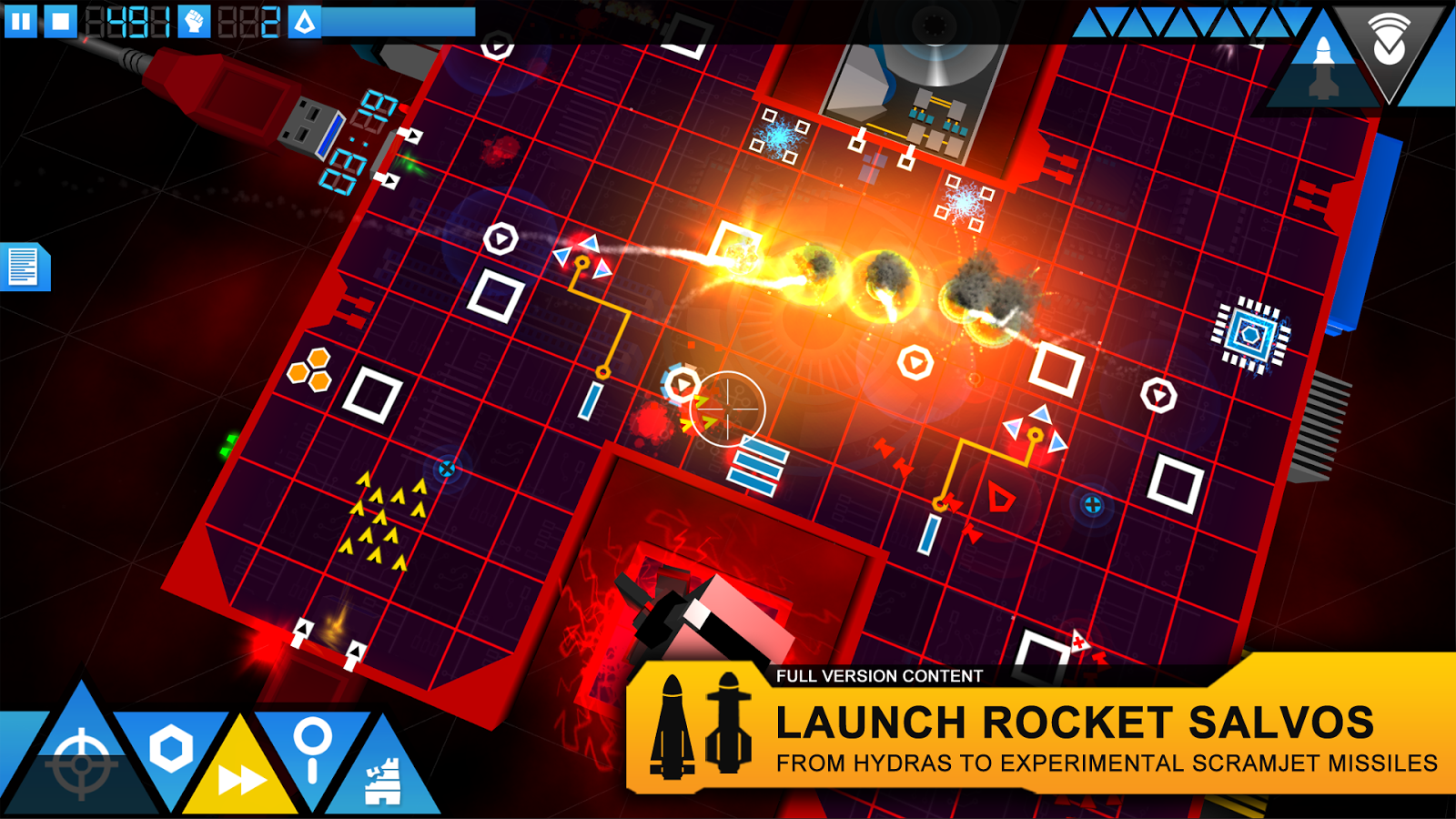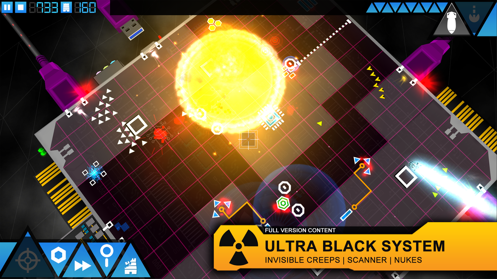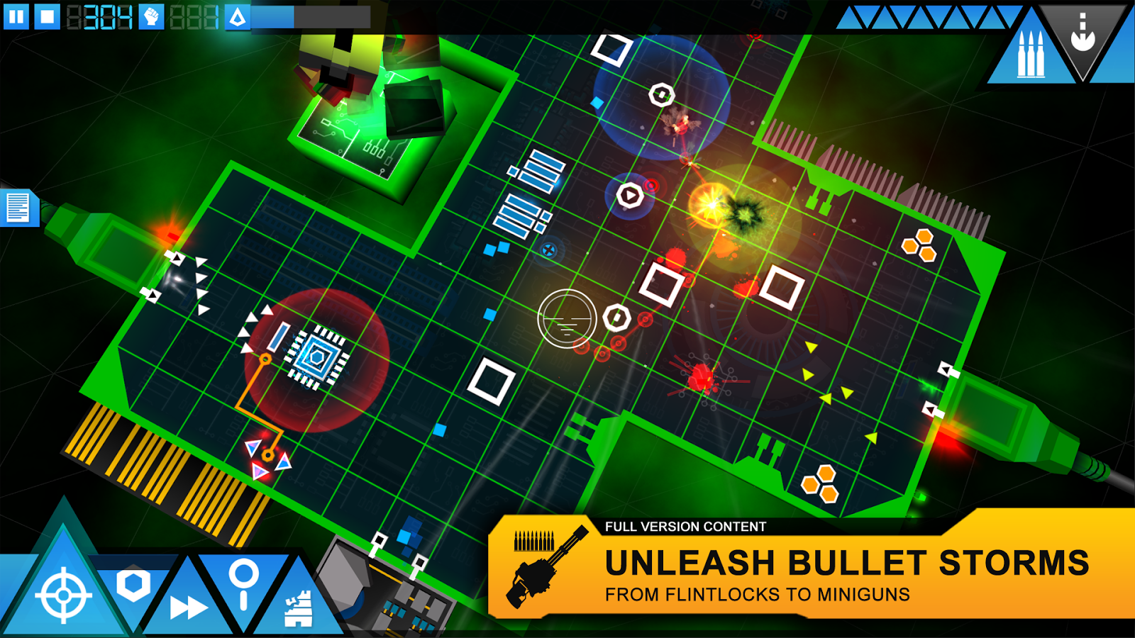 Применяйте по наступающему врагу весь имеющийся у вас огромный арсенал оружия, не давая ему прорваться у центральному процессору системы и захватить его!