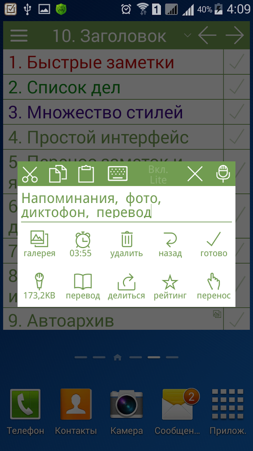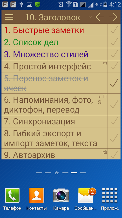 Приложение представляет собой виджет, который располагается на домашнем экране или экране блокировки: по этой причине отсутствует необходимость искать иконку или терять время на запуск Note To Do.