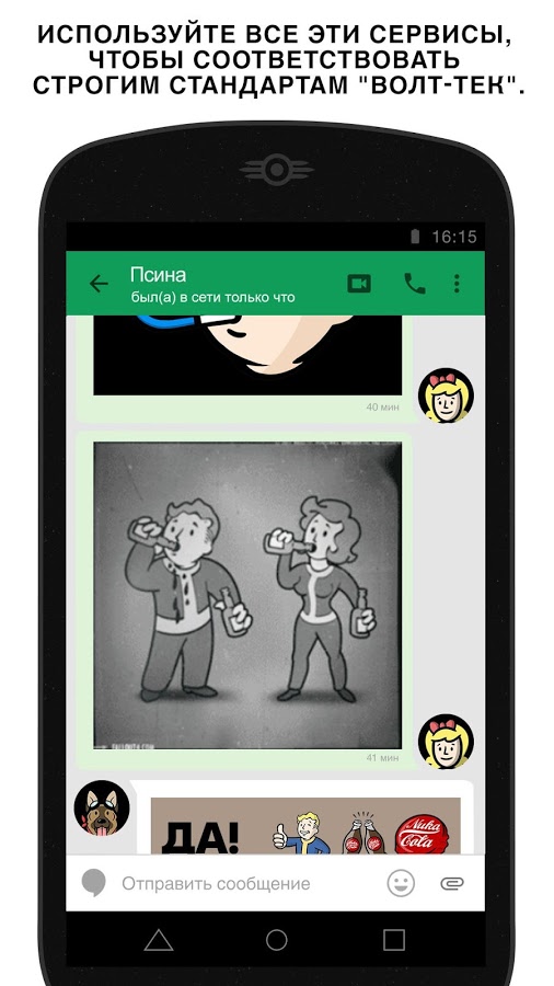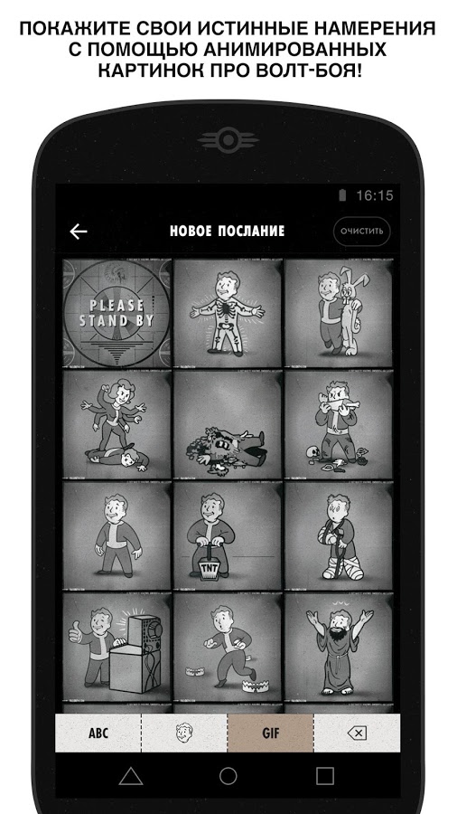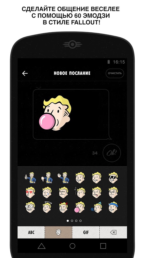 Надоело смотреть на скучные стандартные клавиши? Тогда воспользуйтесь новинкой от "Волт-Тек" - Чрезвычайным Асинхронным Телекоммуникатором (он же ЧАТ). Привнесите в свою переписку дух Fallout, воспользовавшись специальной клавиатурой с особыми текстовыми стилями, 60 эмодзи и анимированными картинками про Волт-Боя. Разомните пальчики, установите ЧАТ и покажите всем, что нет в мире более ярого фаната Fallout, чем вы!