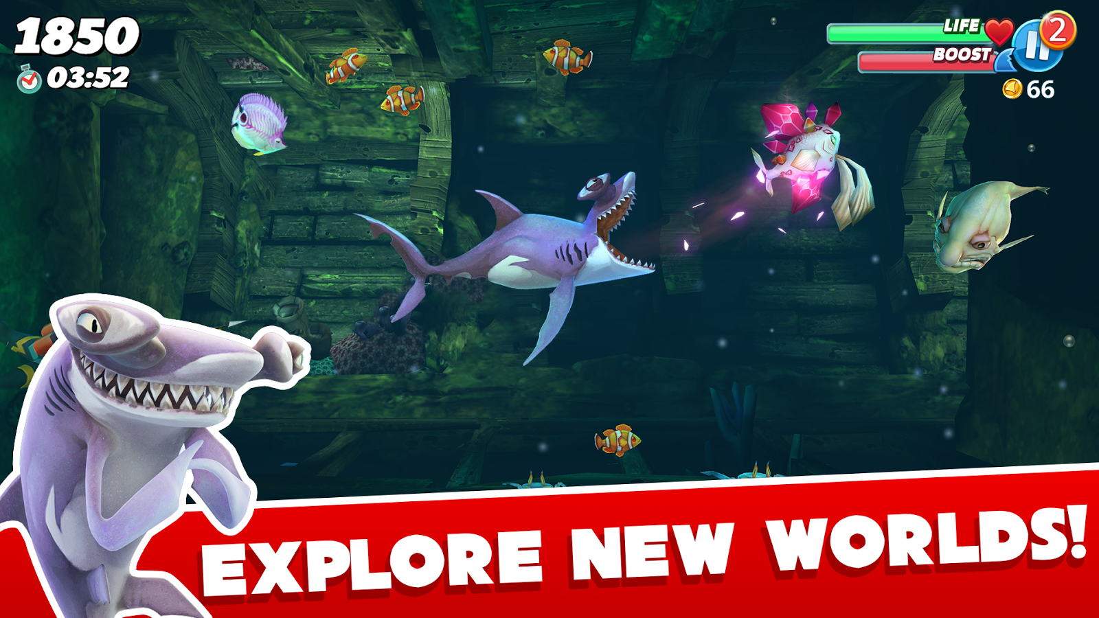Новая часть замечательной серии самой популярной и скачиваемой игры, в которой голодная акула будет пытаться выжить, пожирая вокруг себя все и всех. Исследуй океанские глубины в поисках свежей добычи или крадись по поверхности, застав врасплох птиц или самих отдыхающих. Но и конечно помни об опасностях, которые отовсюду будут тебя подстерегать.