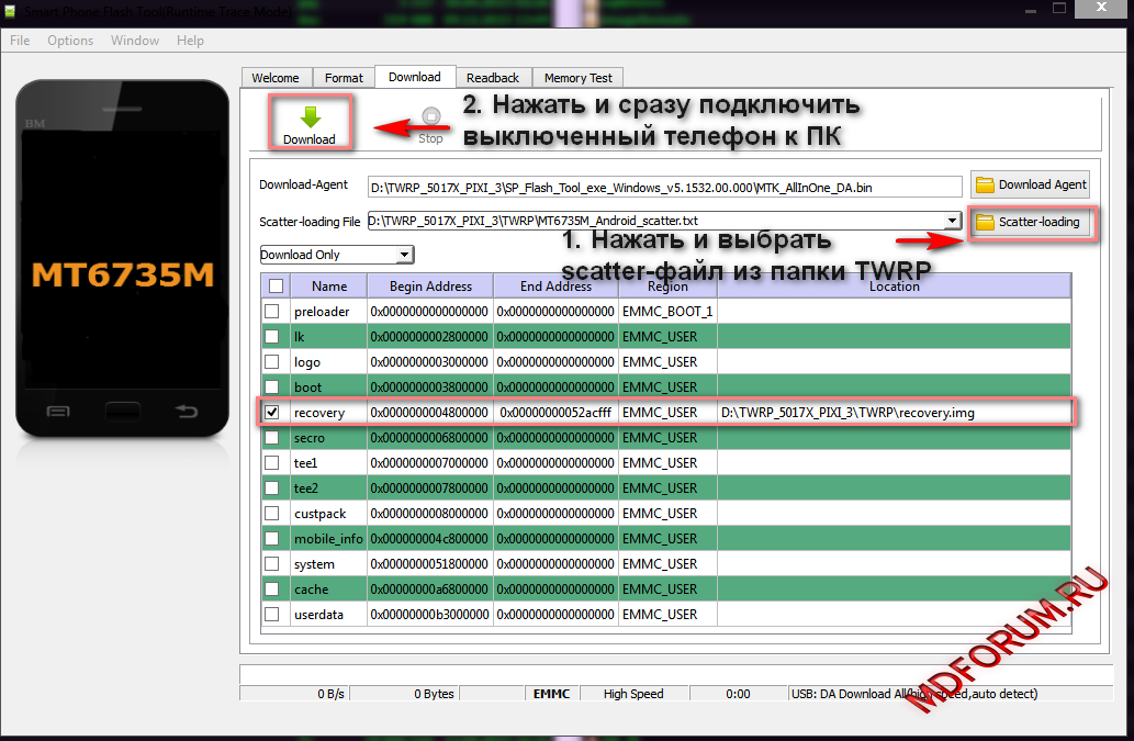 1. Скачать архив TWRP_5017X_PIXI_3.rar, распаковать. (Архив содержит всё необходимое) 2. Поместить архив BETA-SuperSU-v2.52.zip в корень карты памяти. 3. Выключить телефон. Установить драйвера из папки Drivers по этой инструкции. Отключить телефон от компьютера. 4. Запустить SP Flash Tool (flash_tool.exe). Нажать кнопку scatter-loading и выбрать файл MT6735M_Android_scatter.txt из папки TWRP. 5. Нажать кнопку Download и подключить выключенный телефон к компьютеру, если с драйверами всё в порядке то прошивка рекавери начнётся автоматически. Дождаться завершения. 6. Отключить телефон от ПК. Загрузиться в TWRP (на выключенном телефоне зажать одновременно кнопки ЗВУК ВВЕРХ + ПИТАНИЕ, как телефон включится, кнопку питания можно отпустить, кнопку увеличения громкости держать до входа в TWRP) 7. В TWRP выбрать пункт install -> далее архив BETA-SuperSU-v2.52.zip -> согласиться с его установкой проведя пальцем внизу экрана (swipe to install). 8. После установки архива выбрать пункт reboot system. Всё.