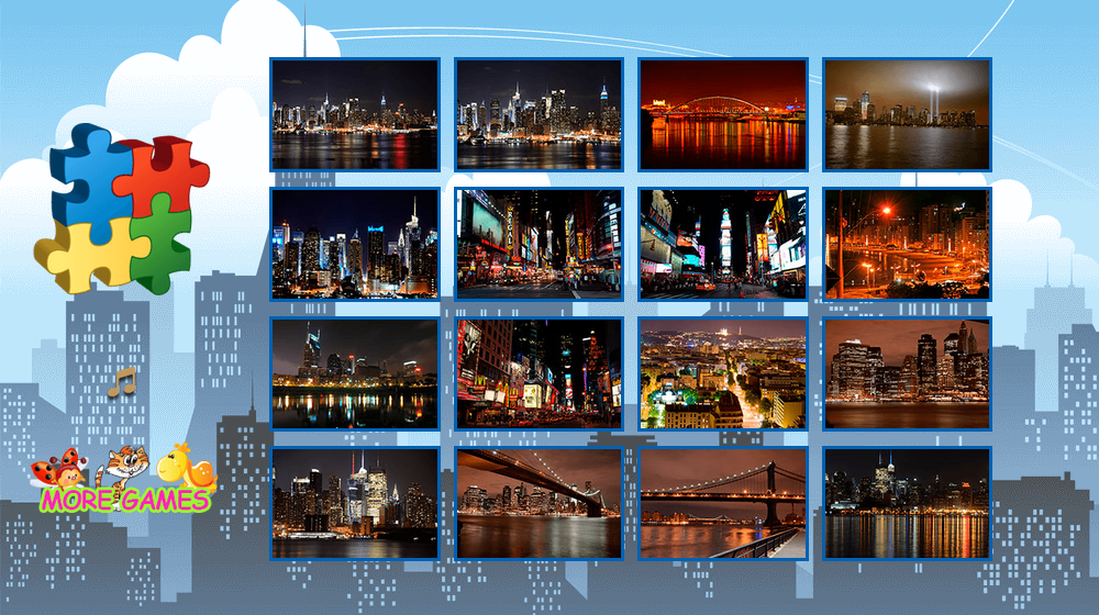 В этой игре присутствуют большие картинки с изображениями городов, вечерних городов, огней, набережных. Пазлы города будут интересны не только взрослым, но и детям. Красивые пейзажи набережных и огней вечернего города в лучах заката доставят вам удовольствие от игры.