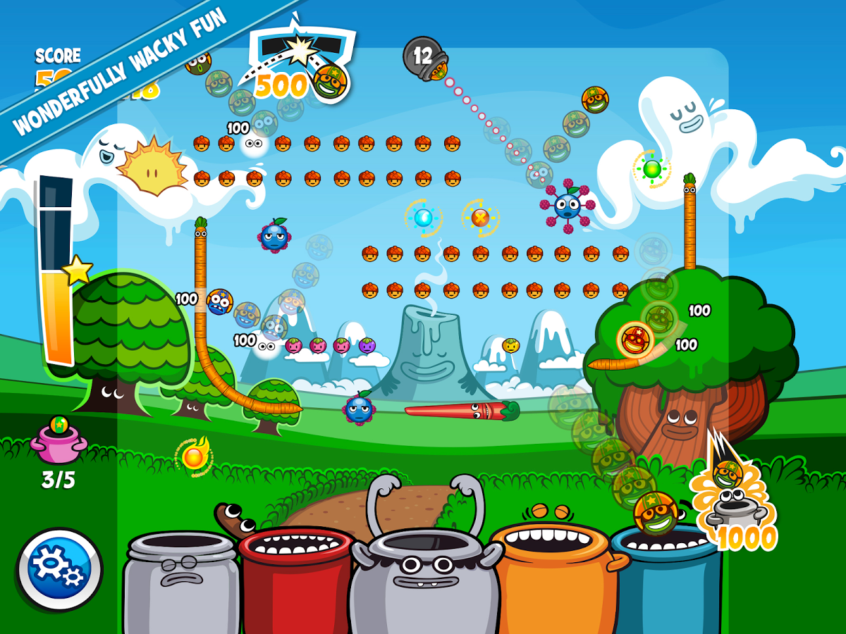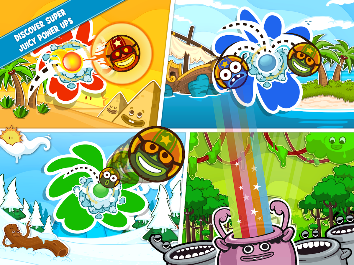 Веселая тайм-киллер на андроид. Стреляйте из пушки горошиной в каске, она будет бить по фруктам и собирать очки. В игре собрано большое количество уровней, на каждом из них есть цель набора очков. Чтобы заработать дополнительные очки, попадите по потолку или стенке уровня, а так же очки приносят прямые попадания в лунку, которые находятся внизу каждого зала. Игра заворожит вас красочной графикой, простым, но увлекательным геймплеем.