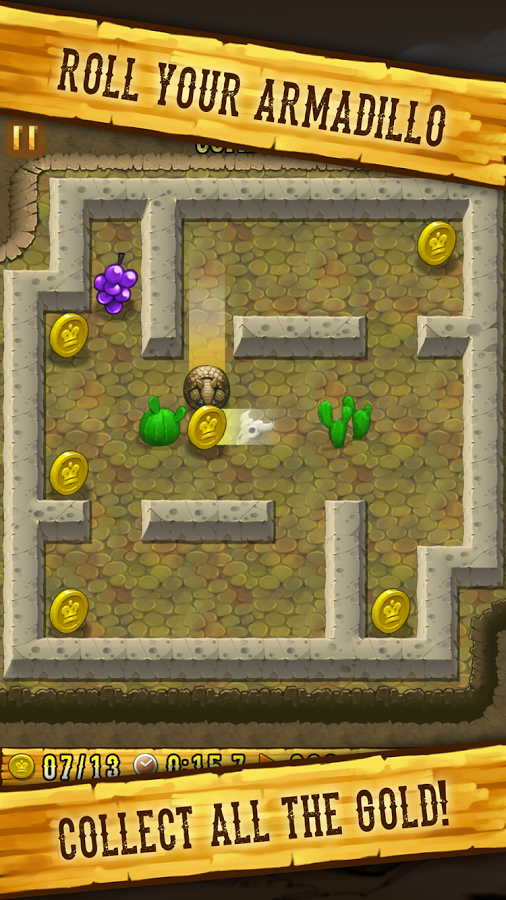 Золотая лихорадка уже близко, и наш главный герой с головой пустился в сбор золота. Он должен собрать его как можно больше и при этом избежать всех опасностей, что стоят у него на пути. У нашего армадило есть одна особенность: если он начал катиться вперед, то остановить его сможет только стена. А это значит, что вам нужно будет продумывать свои ходы, или же вы забредете в тупик. Также за каждый пройденный уровень вы будете получать очки, их количество зависит от того, как много золота вы собрали подряд, или же как быстро прошли уровень.