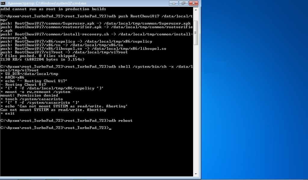 2. судя по всему, у тебя есть ещё одна папка root_TurboPad_723 в твоей папке root_TurboPad_723, так вот кликать нужно по той, при открытии которой ты видишь файлы adb.exe, fastboot.exe и т.д.