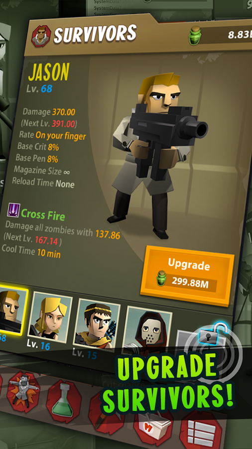 Зомби осадили ваш город. Вы были без сознания после того, как начался апокалипсис, но когда очнулись, поняли что ещё живы и взяли в руки автомат. Ваша задача - отстреливать зомби, которые пытаются вас сожрать. По мере прохождения игры вы сможете менять и улучшать характеристики своего персонажа. А так же спасать других выживших и добавлять их в свой отряд. Чем больше у вас будет союзников, тем опаснее и страшнее будут становится ваши враги. Так что приготовьтесь стрелять не только точно, но ещё и быстро. В игре так же приятная графика и красивая анимация. А теперь вперед, на защиту стен города.