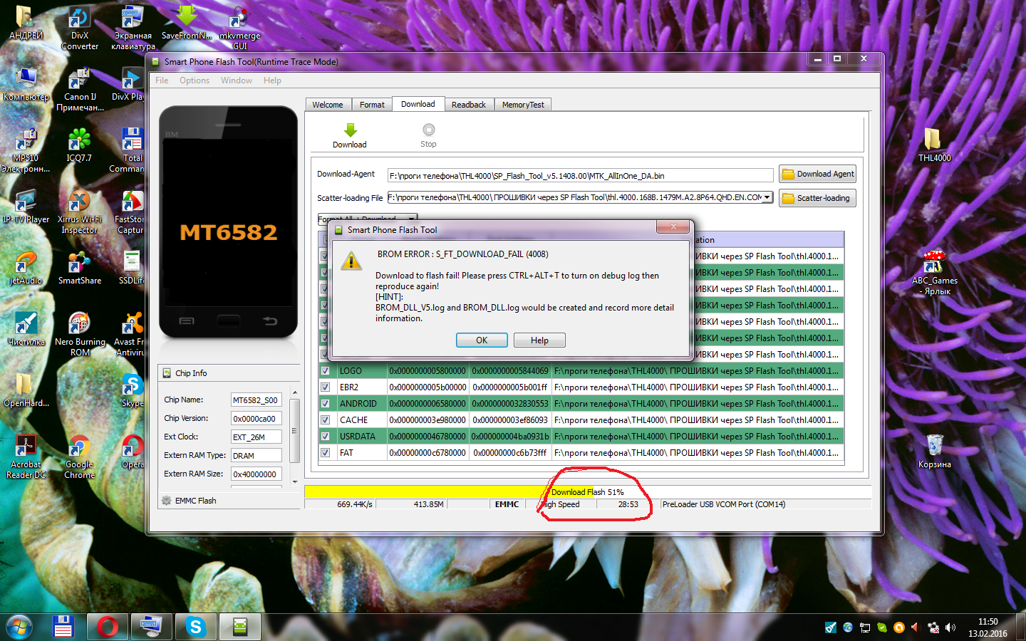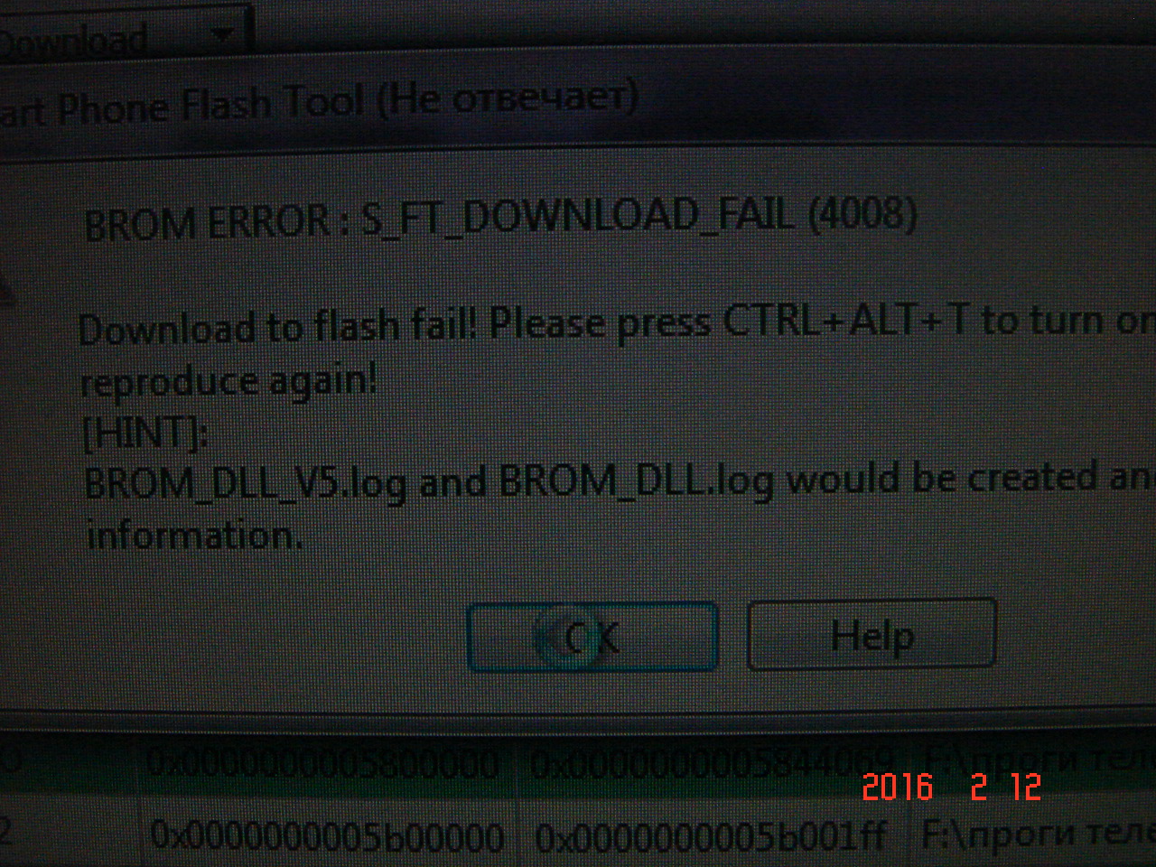 спасибо конечно огромное за помощь что вы помогаете но я пробую уже все варианты SP Flash Tool:запускаю беру скейтер-файл из прошивки Офф. от 2015.03.19 для FTool и Офф. прошивка от 2014.11.28 для FTool и вот такое происходит (инициализация скаттер файл не удалось. пожалуйста, проверьте имя скаттер файл который вы загружаете, является законным) или если всё вставляю по новому то такая фигня