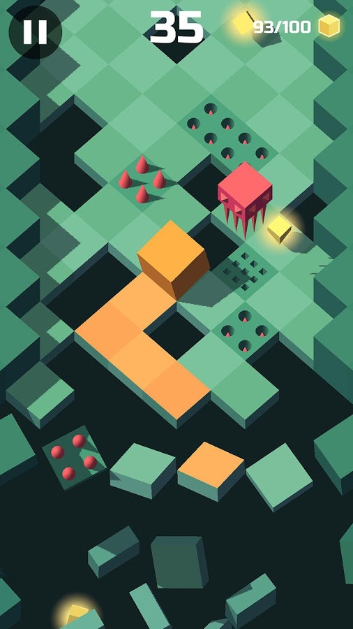 Adventure Cube – довольно динамичная аркада с квадратом разных цветов в главной роли. Игра не так проста, как кажется, а сложность её возрастает с каждым уровнем. Вам необходимо управлять квадратом, который двигается вверх без остановки, вам можете выбрать направление вправо или влево. Как вы уже поняли прогулка лёгкой явно не будет. На вашем пути будут встречаться различные пропасти, опасные ловушки, острые как лезвия ножей шипы и другие препятствия, опасности и ловушки. Принятие решения в какую сторону двигаться должны приниматься молниеносно, иначе вы попросту не успеете вовремя выбрать нужное направление. Во время движения собираем золотые кубики.