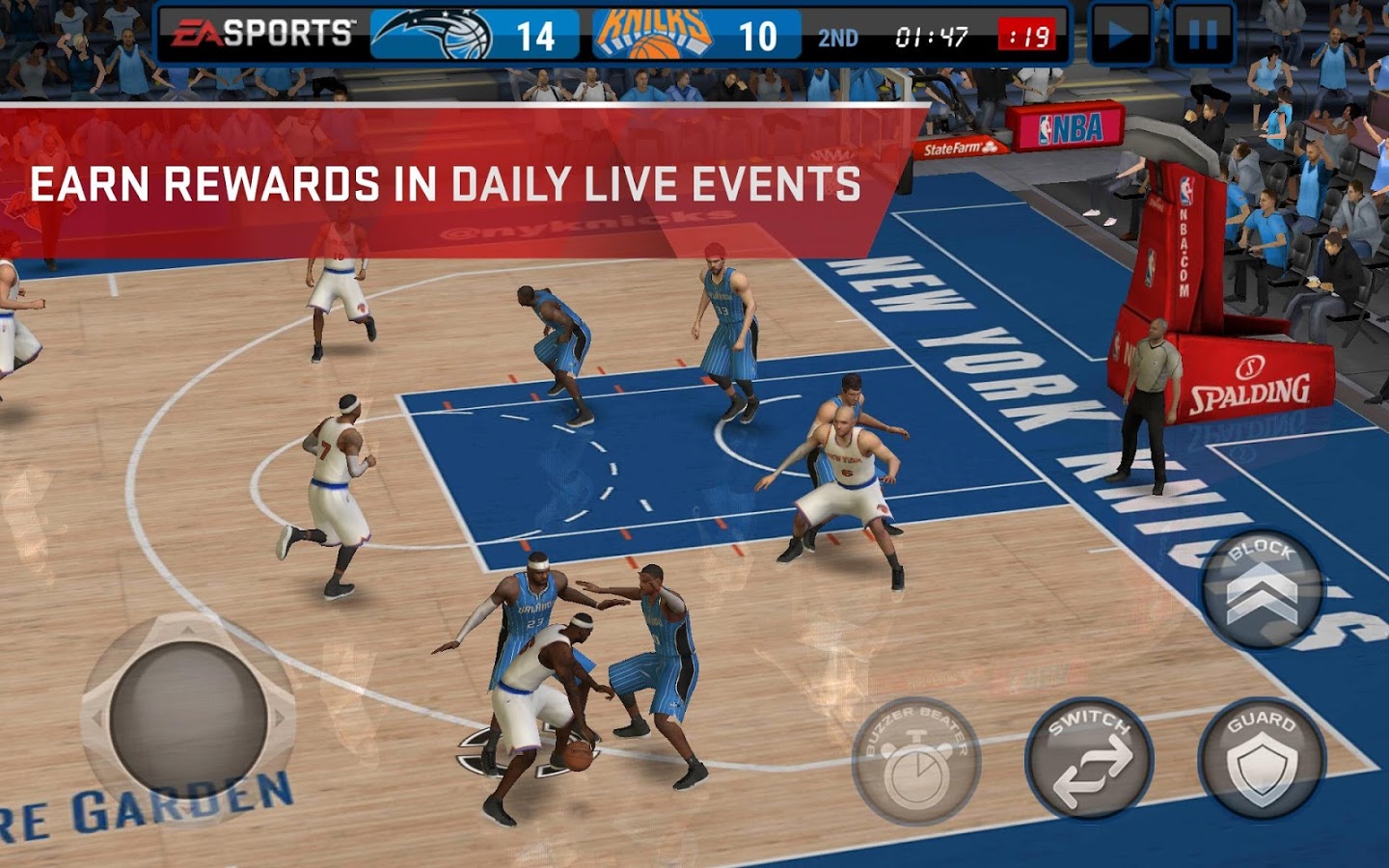 NBA LIVE Mobile – баскетбол на андроид с отличной графикой, где вы будете управлять своей любимой командой. Возьмите под свой контроль реальную баскетбольную команду игроков НБА и приведите их к победе на главном чемпионате мира. Проделывайте точные пасы игрокам, трюки и финты и забивайте один за другим мячи в кольцо соперников. Тренируйте свою команду, поднимая уровень каждого баскетболиста на новый, а также открывайте новые навыки и способности игроков. Пополняйте свою команду новыми игроками и соберите команду мечты. Участвуйте во всех матчах с многочисленными соперниками и побеждайте их в неравных матчах. Получайте отличные награды за победы в матчах и выполняйте ежедневные задания.