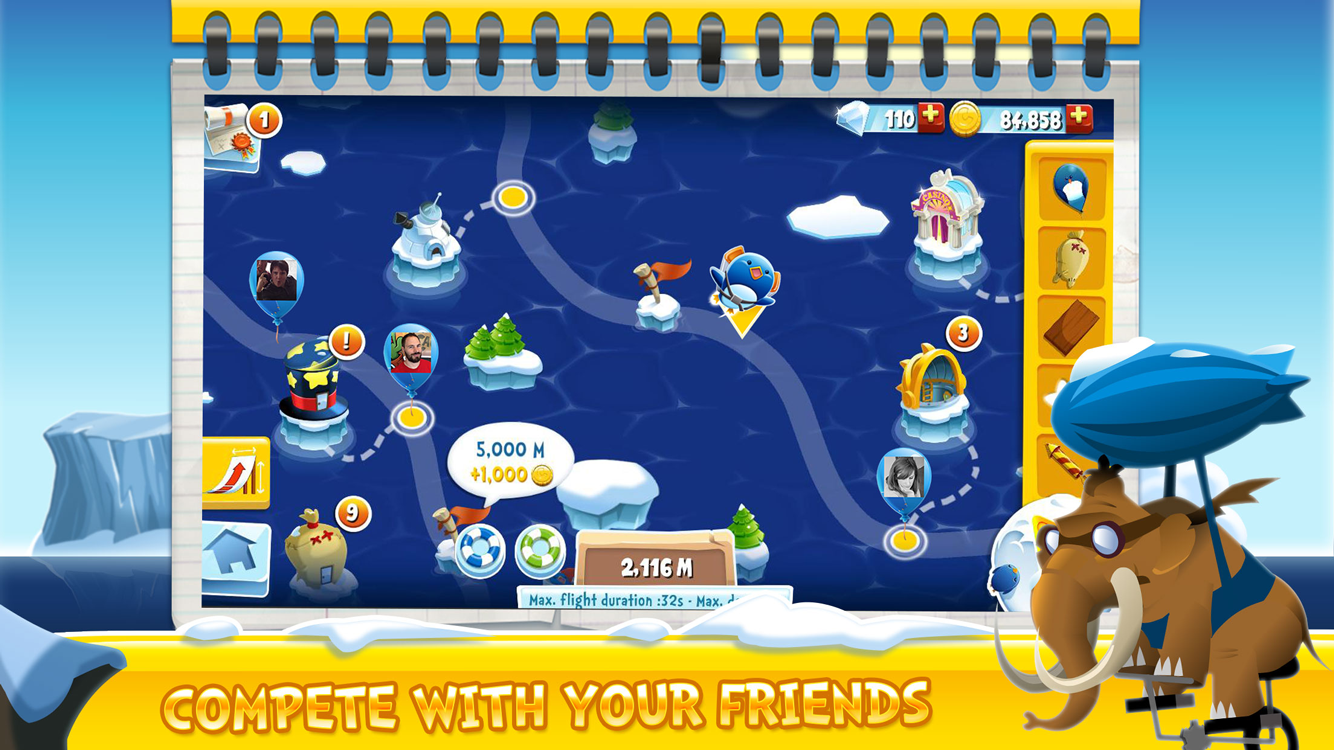 Твоя цель предельно проста: лети как можно выше и дальше. Полет дает ценные наличные для покупки ледяных обновлений. Немного денег сверх того можно заработать еще и на достижениях каждого уровня.
