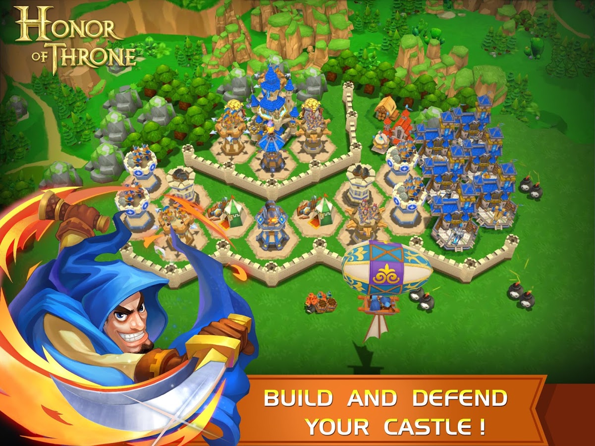 Honor of Throne – стратегическая мобильная игра, в которой отважные герои были втянуты в эпическую и беспощадную войну с тёмными силами. Создайте свой собственный замок, оттачивайте мастерство ваших войск и проводите исследования древних реликвий и неизвестных территорий, чтобы получить честь славу и трон! Стройте свой замок и уничтожайте врагов и зарабатывайте очки чести и ресурсы, за которые можно нанять новых солдат или построить новую инфраструктуру в замке. С помощью воздушного шара можно исследовать новые территории полные невероятных приключений. Пошаговые поединки должны сопровождаться грамотными и тактически выверенными ходами.