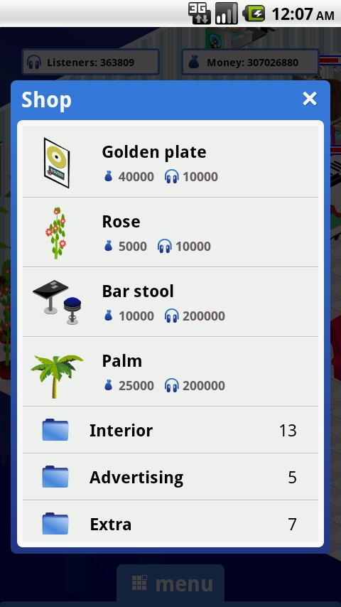 Radio Tycoon – симулятор на андроид, где вы возьмете под свой контроль радиостанцию, которая работает в реальном времени. Управляйте радиостанцией, слушайте любимую музыку, отправляйте сообщения друзьям и самое главное станьте богатым, зарабатывая на своем радио хорошие деньги. Радио работает в реальном времени, и будет продолжать вещать в массы, даже когда вы не играете в игру. С помощью своего аккаунта Facebook заходите в игру и приглашайте своих друзей присоединиться к вам или стать конкурентом вашему радио. Зарабатывайте деньги и приобретайте новое качественное оборудование для студии и меняйте внешний вид помещений. Зарабатывайте больше денег, прокручивая в эфире рекламу.
