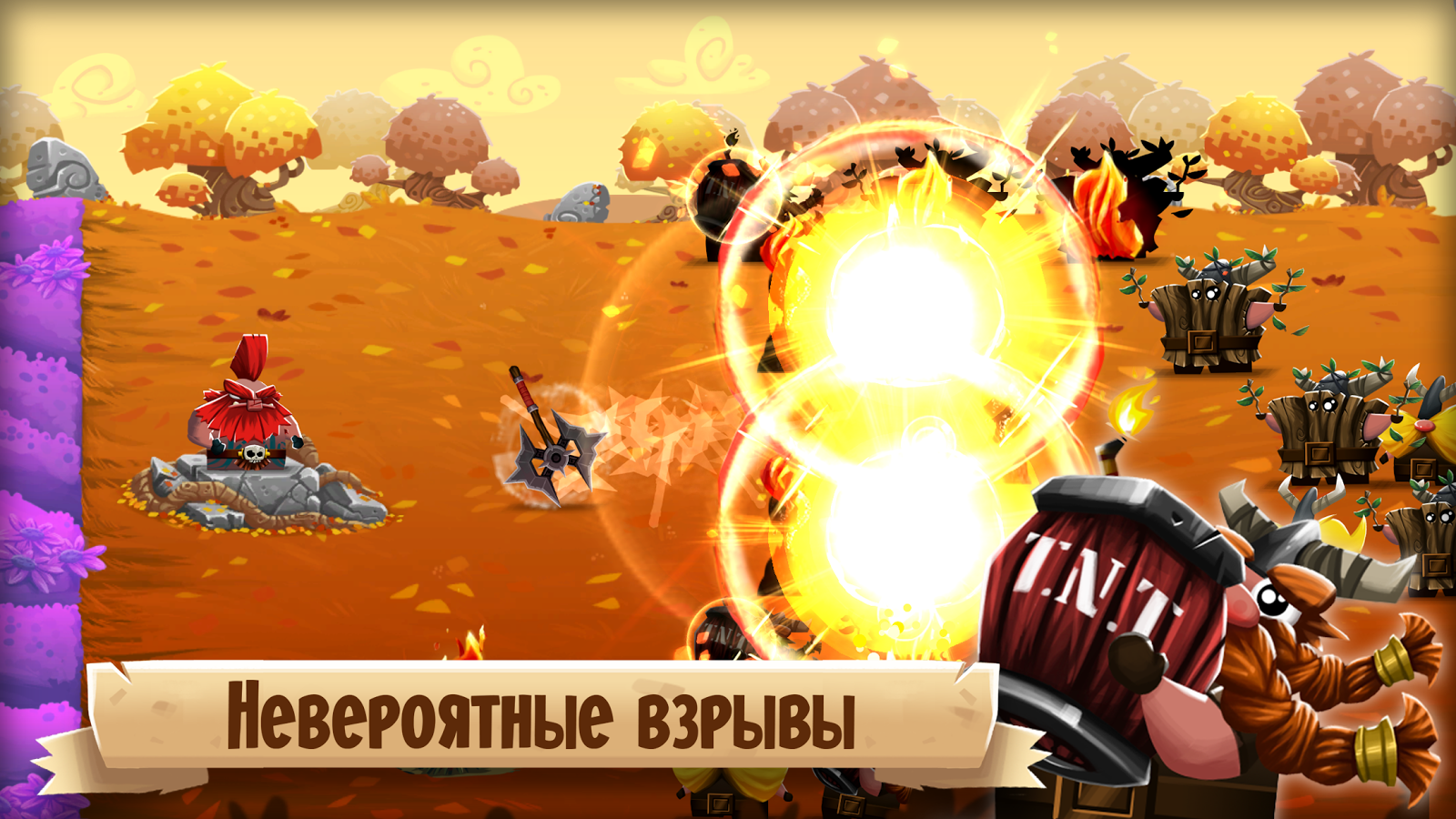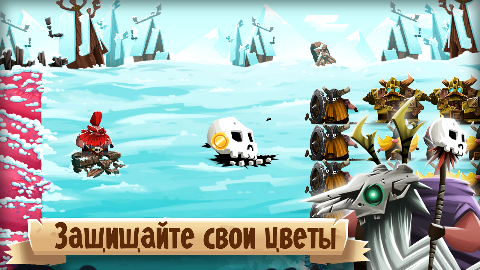Помогите Красной Бороде защитить бесценные цветы от полчищ незваных викингов, рассекая их метко брошенным острым топором и применяя против них заклинания богов и клевые подпитки!
