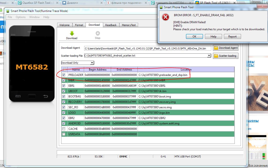 доброе время суток. после не удачной прошивки планшет определяется компом как mediatek usb port, и при попытки прошить появляется ошибка. . помогите пожалуйста.