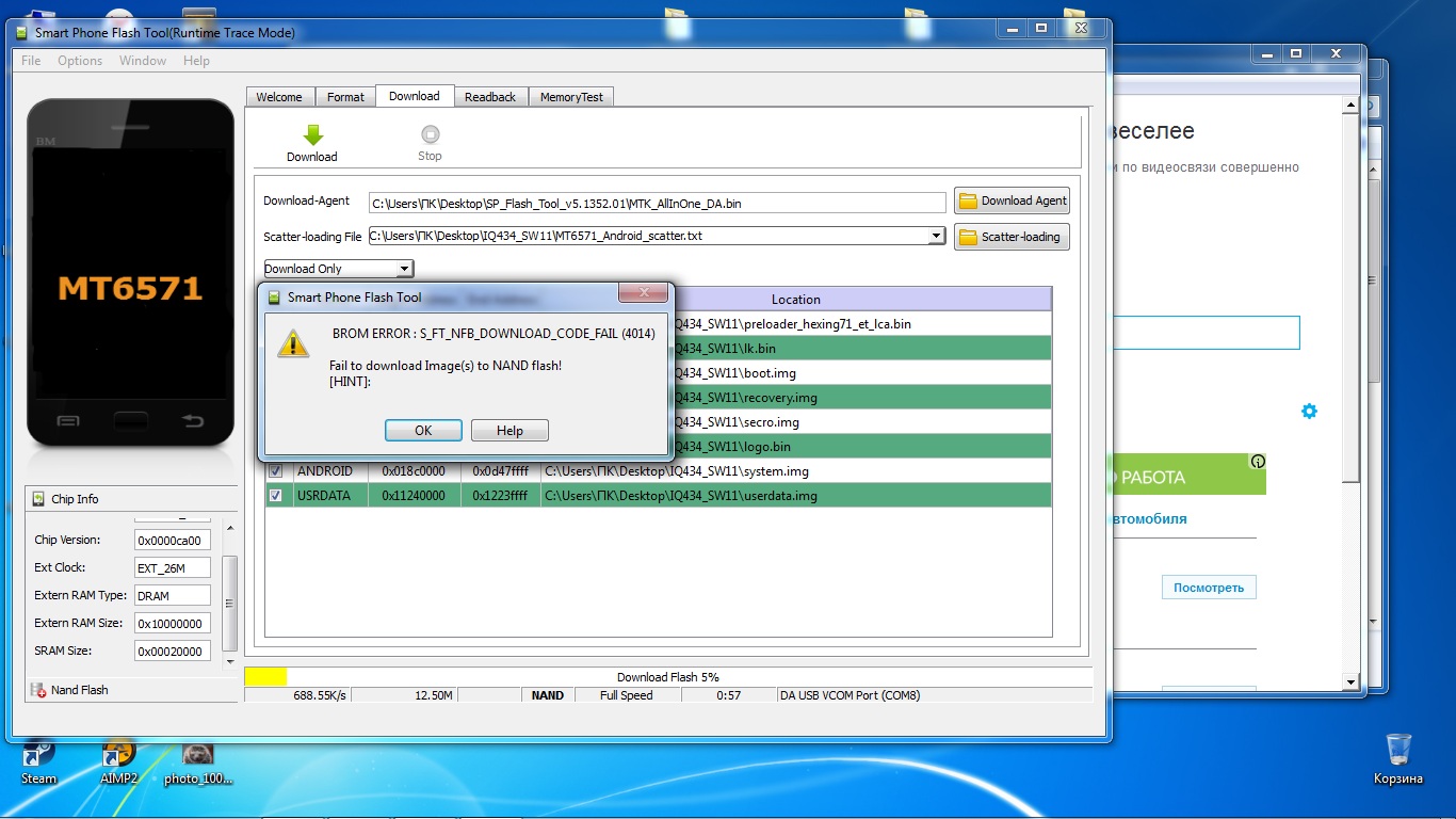 При установки прошивки на телефон дошло до 5% и выдало ошибку, и дальше телефон просто перестал включаться, при повторной попытки установки та же проблема что делать подскажите.