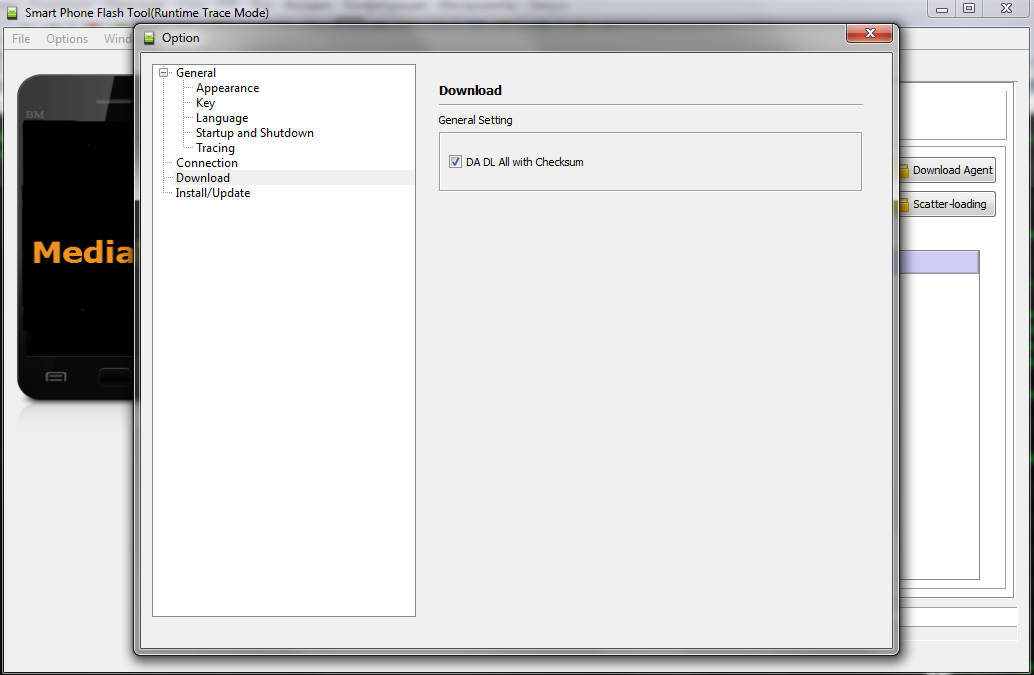 1. Скачиваешь архив UPDATE-SuperSU-v2.46.zip, помещаешь его не распаковывая на карту памяти. 2. Скачиваешь архив TWRP_DEXP_ixion_Energy.rar из вложения к посту, распаковываешь. 3. Подключаешь выключенный телефон и устанавливаешь драйвер из папки drivers для своей операционной системы на ПК. Отключаешь телефон от ПК, но не включаешь. 4. Запускаешь SP Flash Tool (flash_tool.exe) 5. Открываешь опции, переходишь в Download и ставишь галочку на против пункта DA DL Checksum. Закрываешь окно с опциями.