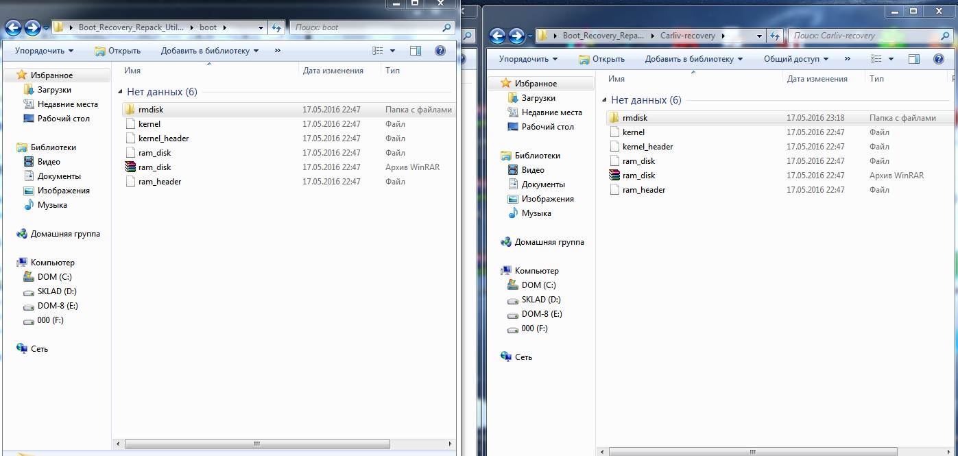 И почему так? И что дальше делать? Ну, скопировал я эти файлы из стокового рекавери в карлив, но файлы-то совсем не те....