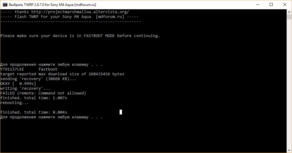 Доброго времени суток! Не могу установить TWRP_2.8.7.0. Пишет, что у меня нет прав на эту операцию, хотя разблокировку телефона произвел через flashtool.