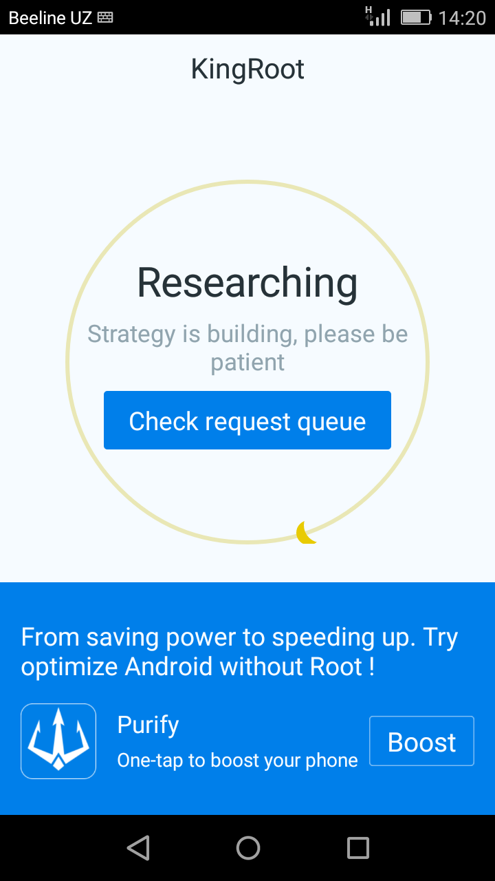 Все делаю как в инструкции . Включил интернет запустил приложение но кнопки рут нет. Появилась такая заставка. Крутиться яблочко по кругу .Ждал 20 минут но ничего не происходит. В чем причина?И еще где пункт Опции для разработчика на телефоне искал так и не нашел. Можно по подробнее.