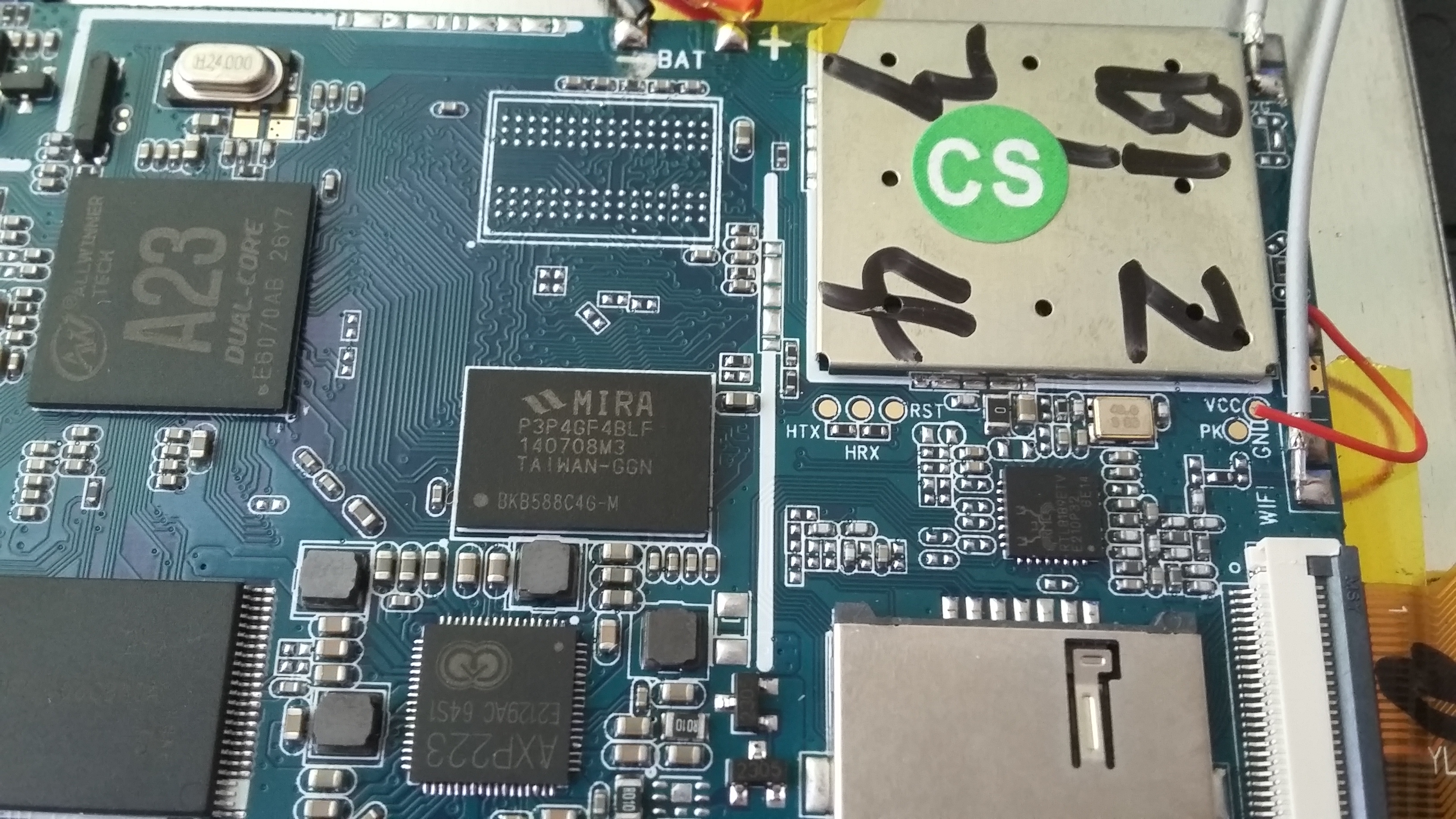 Разобрал сегодня. на процессоре написано A23 DUALCORE ALLWINNER TECH и цифры его E6070AB 26Y7 забыл сказать что кнопки в этом китайце ресет нету !, просто дырка и всё . вот такое чудо ). тыкай туда зубочисткой хоть до ночи ). нажатие клавиш вкл. и плюс , что бы войти в рекавери ничего не происходит. ОН просто включатся и всё... что можно сделать ?. Спасибо ).