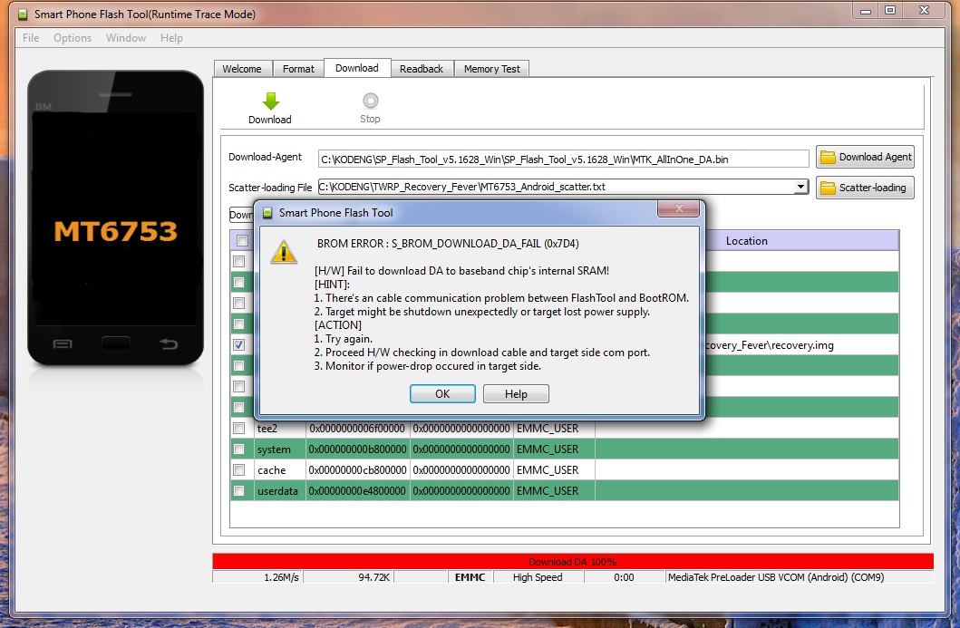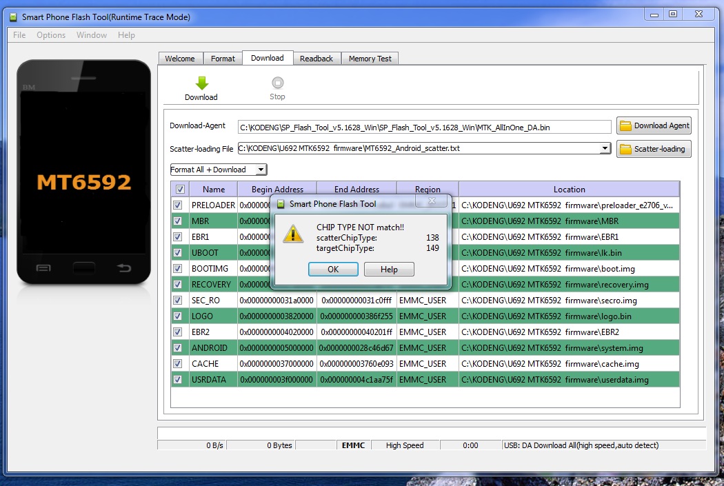 ничего, эта прошивка не для твоего телефона (для другого процессора), либо проблема в версии флэштула, попробуй сменить на более новую