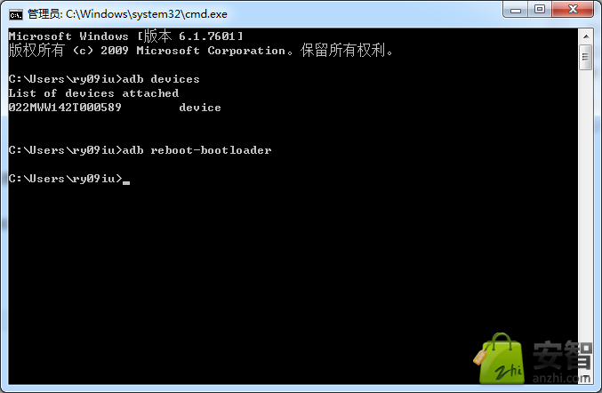 adb reboot-bootloader - после ввода этой команды телефон перезагрузится в режим загрузчика (fastboot)