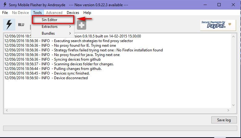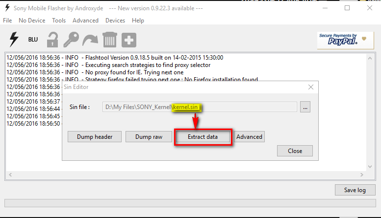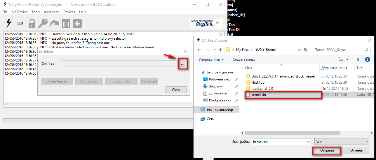 3. Запускаем Flashtool, нажимаем сверху на Tools -> и выбираем Sin Editor, в открывшемся окошке жмём на многоточие и выбираем файл kernel.sin, затем жмём Extract Data, после чего, рядом с файлом kernel.sin появится файл kernel.elf, который нам и нужен.