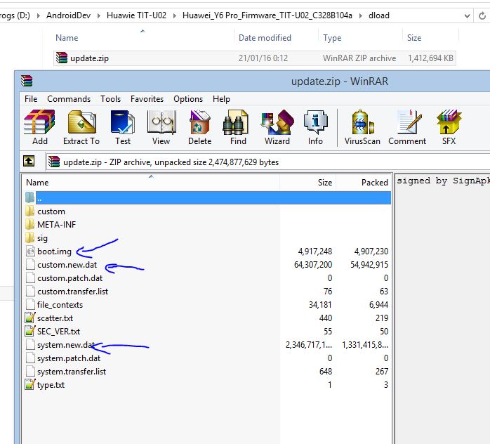 я же написал как, тебе не архиватором нужно открывать, а распаковать с помощью Huawei Update Extractor