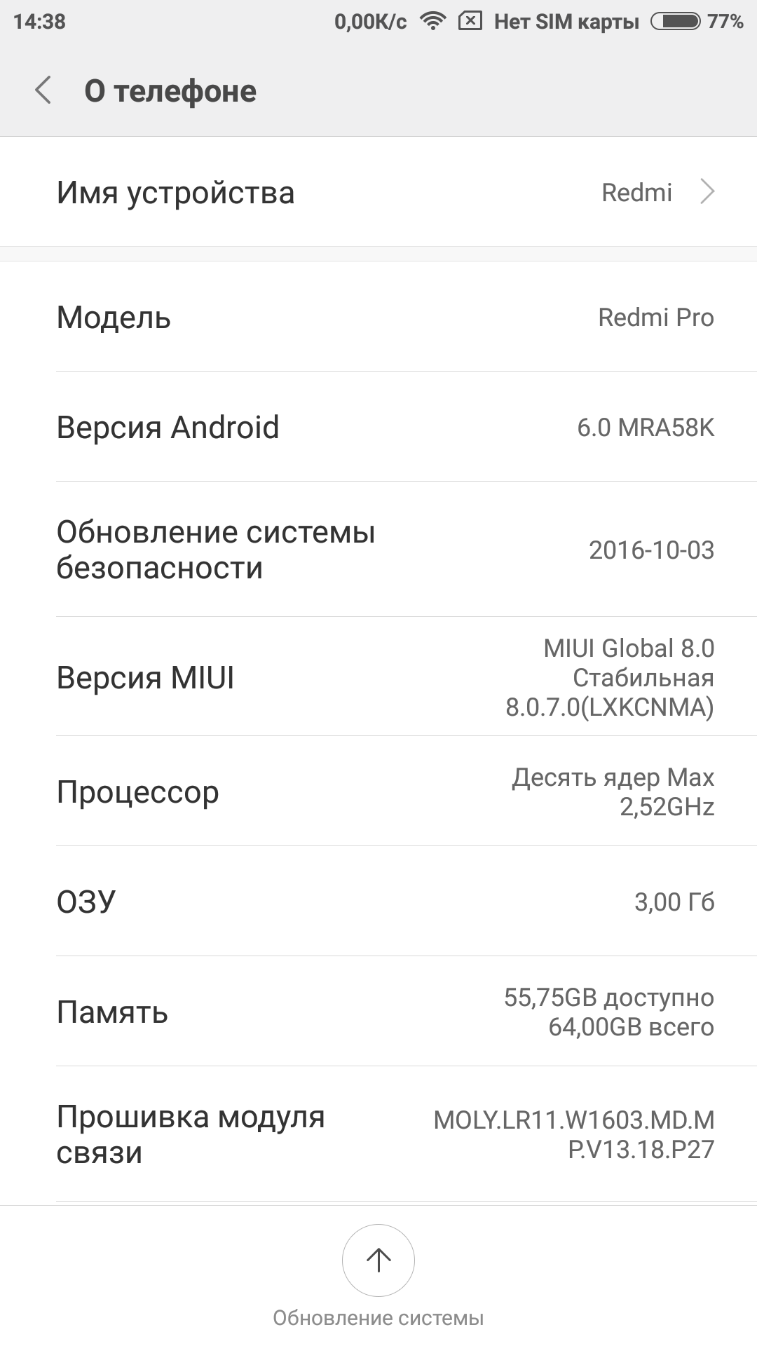 Скриншот информации о прошивках.