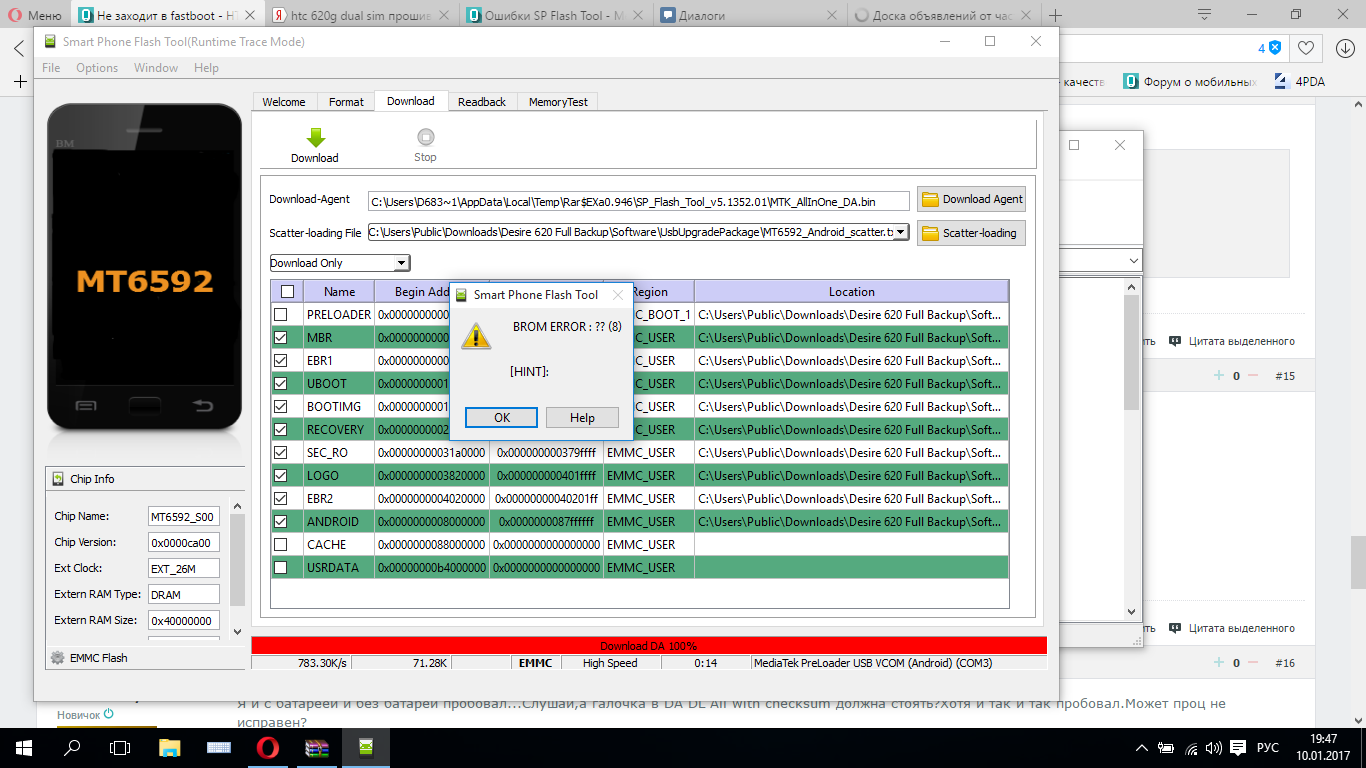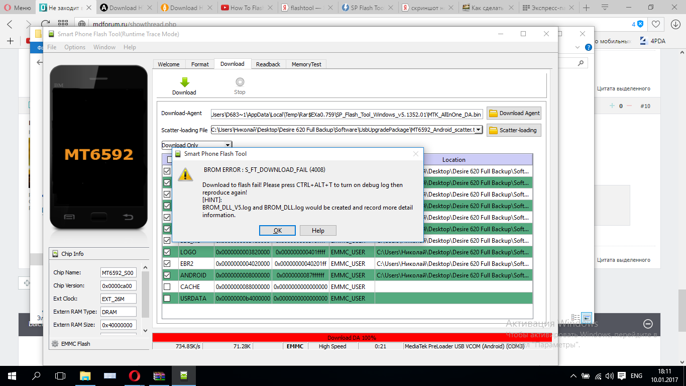 7)После загрузки,отключаем телефон от компьютера,нажимаем в FlashTool "Download" и только после этого повторяем пункт 4.
