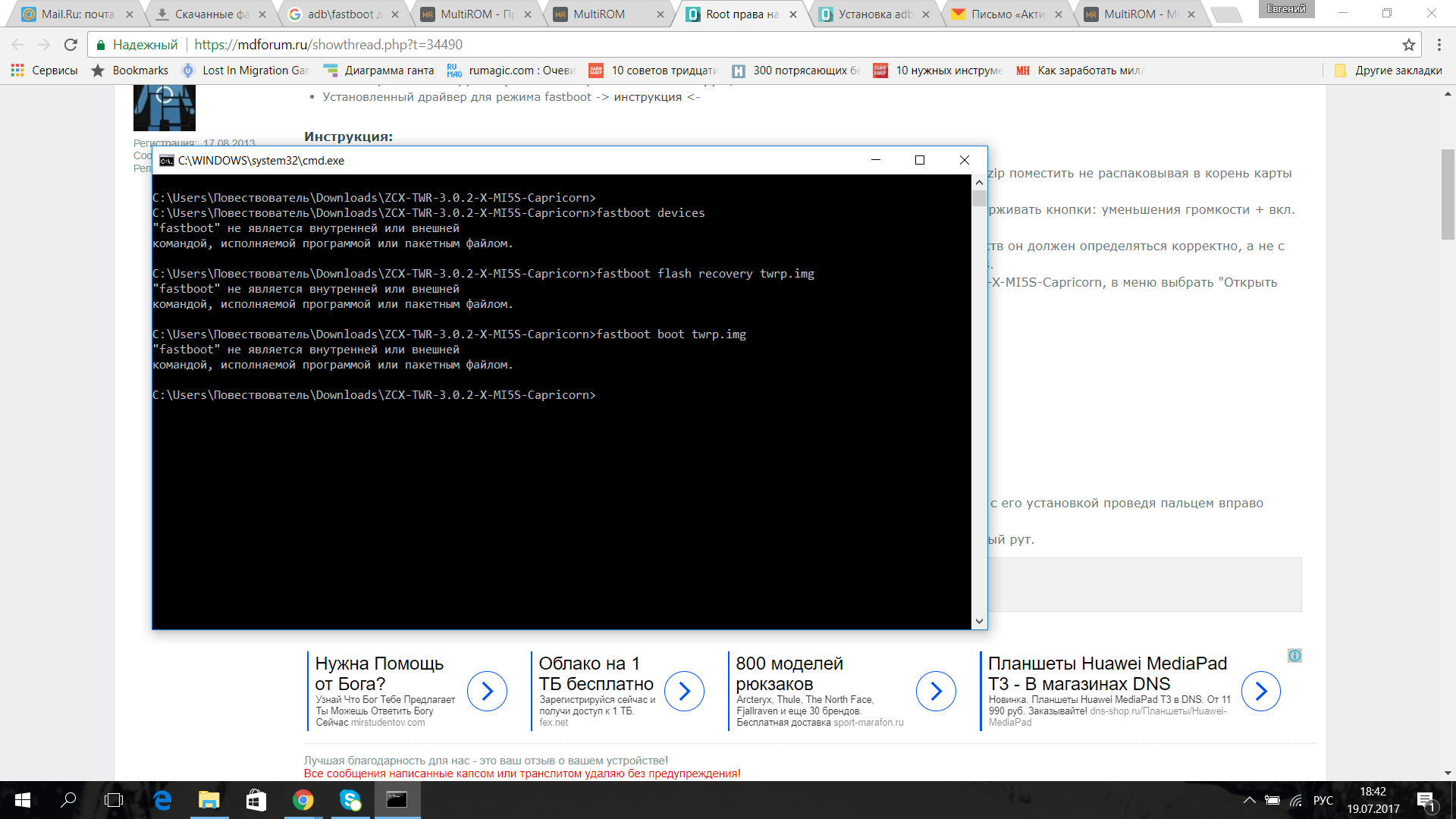 - Установленный драйвер для режима fastboot -> инструкция <-